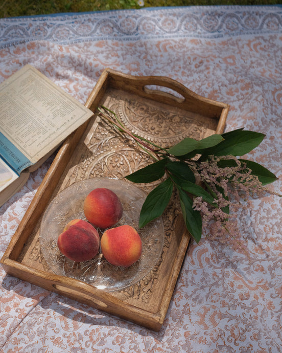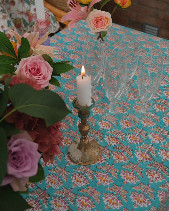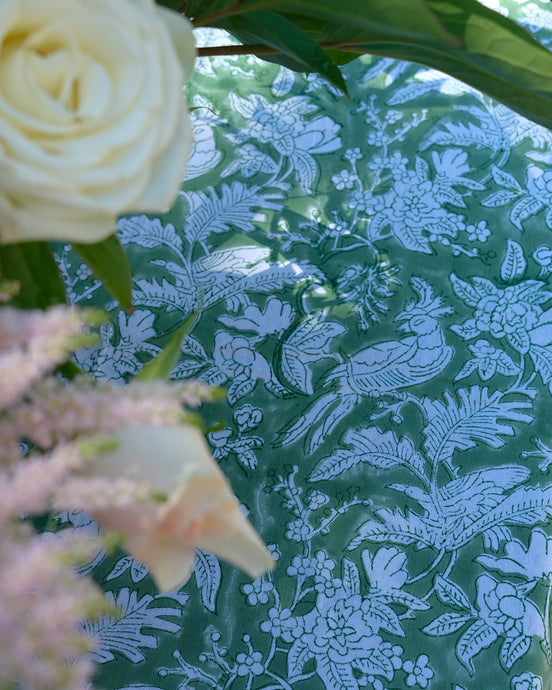 Vores duger er lavet af hånd-trykt bomuld fra Jaipur, Indien.
